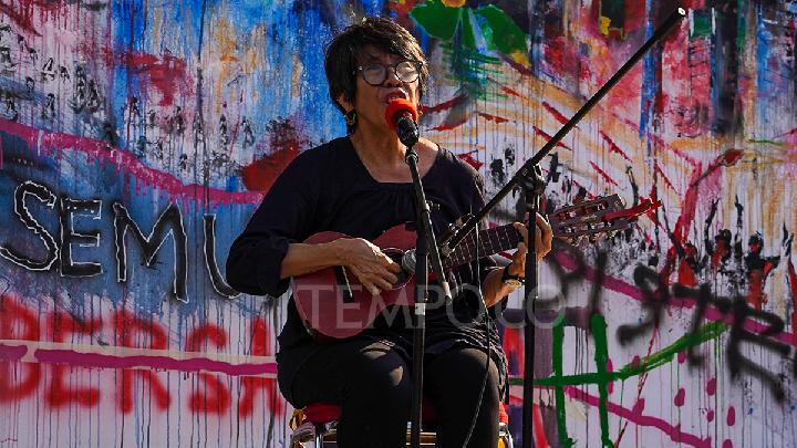 Penulis sekaligus musisi Reda Gaudiamo dalam mimbar bebas bertajuk Seni Melawan Tirani di Taman Ismail Marzuki, Jakarta, 1 September 2025. Tempo/Martin Yogi Pardamean